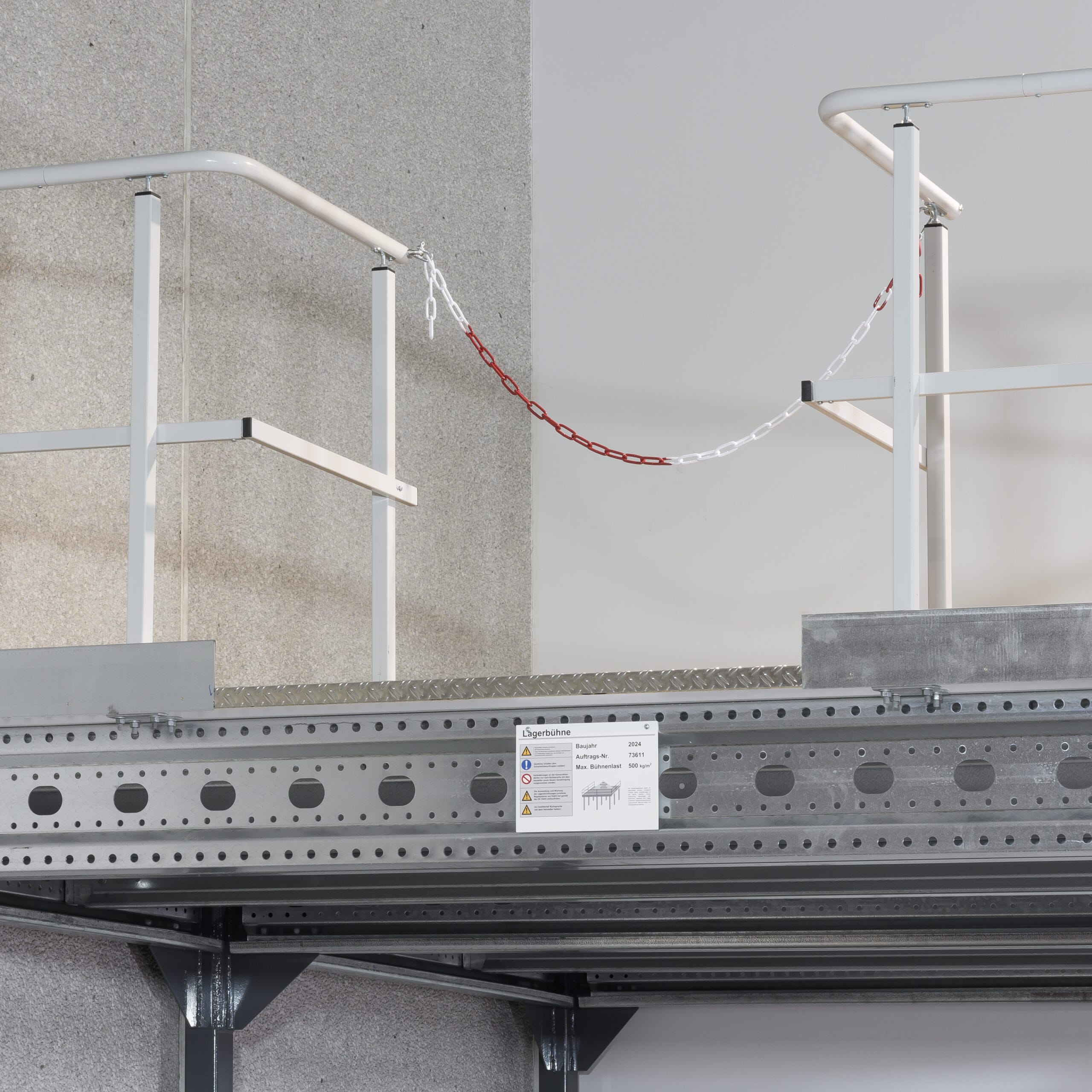 Die Lagerbühnen werden in Deutschland gefertigt und erfüllen alle statischen und technischen Standards. Eine einfache Selbstmontage der teils vorgefertigten Bauteile minimiert Unterbrechungen in deinem Betriebsablauf. Das erforderliche Montagematerial liefern wir dir übersichtlich mit. Auf Wunsch bieten wir auch einen Montageservice an. Bitte beachte, dass die Lagerbühne nur auf Betonboden installiert werden darf.