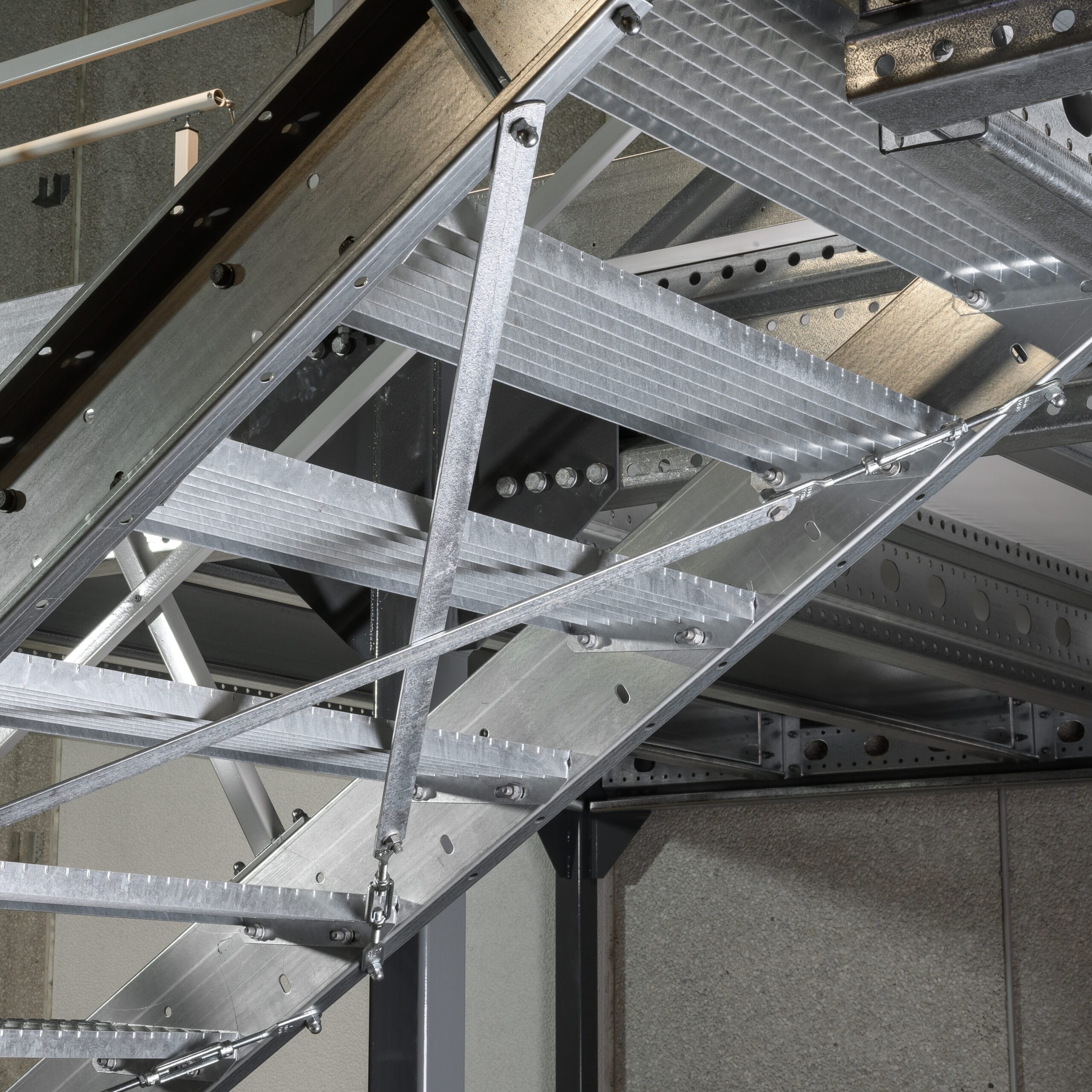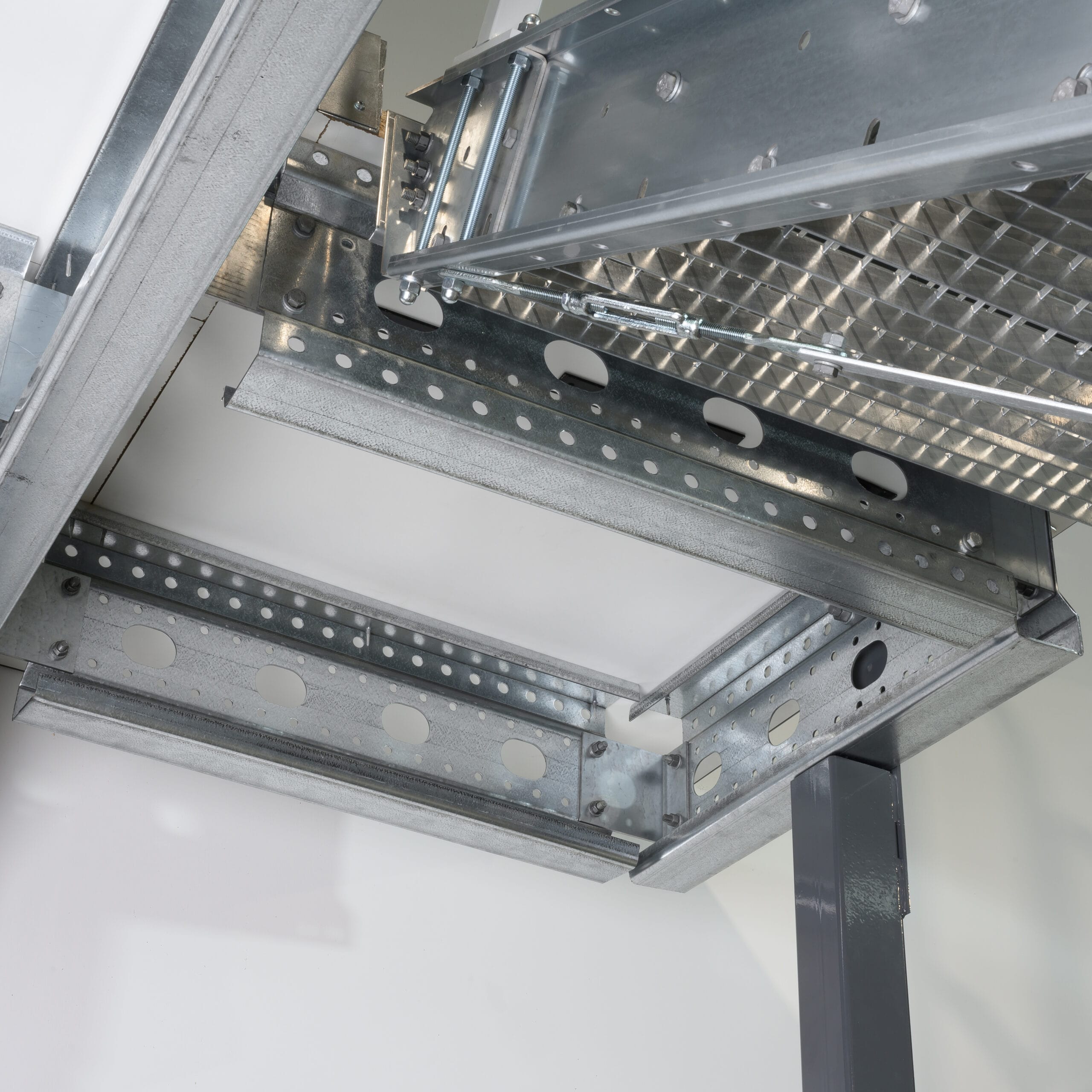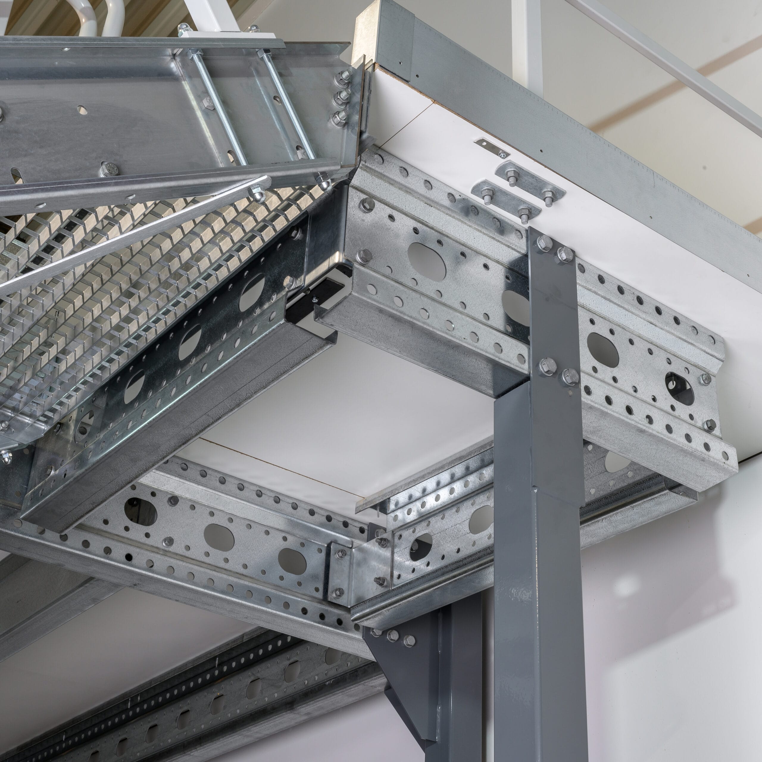 Die Lagerbühne wird als modulare Stahlkonstruktion aufgebaut und kann je nach Bedarf und Raumbegebenheiten flexibel konfiguriert werden.